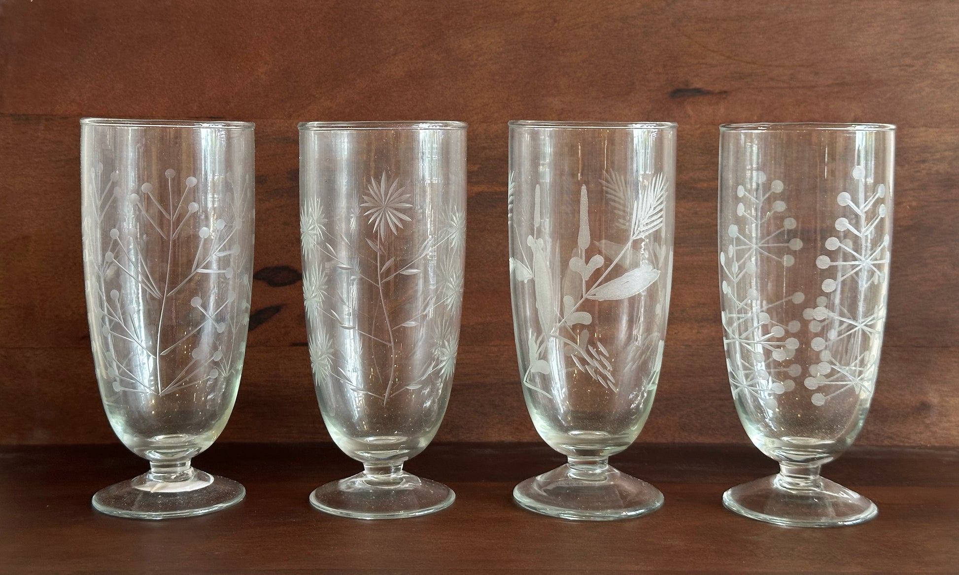 Hand-Blown Stemmed Glass with Etched Botanicals