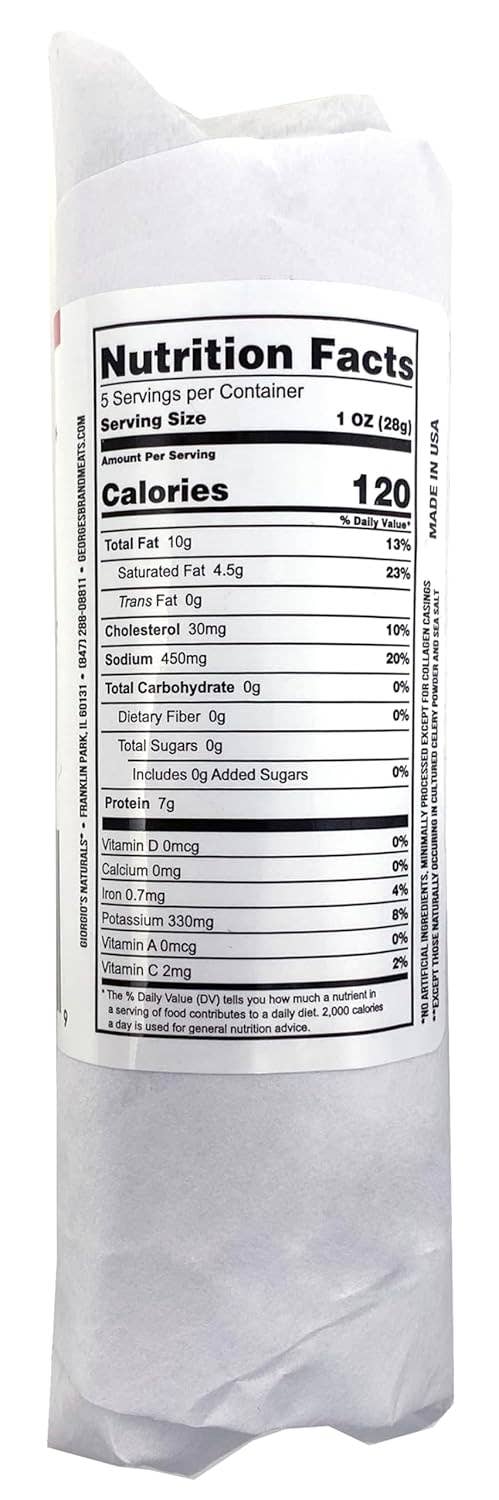 This salami is made with pure beef and has a medium heat profile, achieved by blending white pepper, black pepper, and Calabrian chili. It boasts a creamy and buttery texture, and has a tangy taste. A delightful mixture of flavors makes it a unique and enjoyable experience. Our salami is dry aged a minimum of 30 days. Are all natural and made avoiding the use nitrites and nitrates, MSG, dairy and gluten. All of the spices for the production of our salami are imported from Italy.
