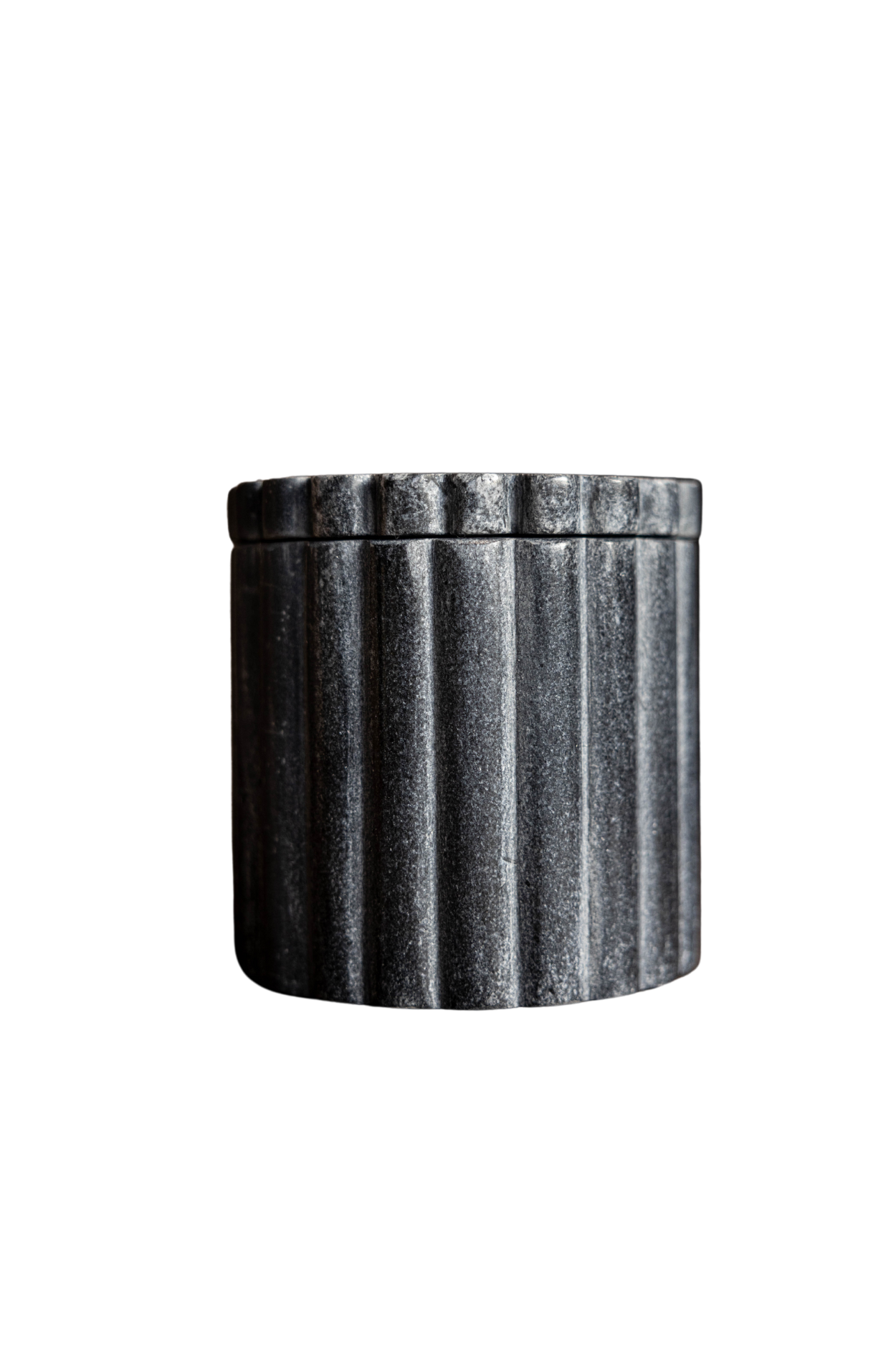 The Black Marble Fluted Jar by Luxe B Co is a practical and stylish addition to any kitchen, bathroom, or living room. Its versatile design allows it to discreetly store and organize various items, making your space tidier.