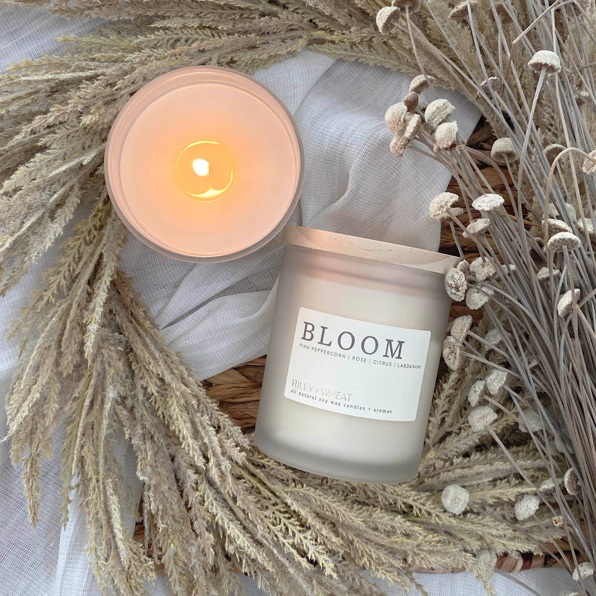 BLOOM 8oz Our Soy wax candle is infused with high quality and clean fragrance oils made from natural essential oils. Each candle is wicked with a braided cotton wick to provide an even burn and stronger scent. These beautiful aromas and luxurious design bring a sense of indulgence and timelessness to any room. Soy wax is non-toxic, biodegradable, and clean- burning. Due to its plant- based nature, some frosting may occur. Frosting may appear as 'bubbles' between the wax and container. This happens when the wax expands or shrinks due to weather variations. Discoloration may also happen, so we recommend keeping your candles away from the sunlight. These variations will not affect the burning or quality of the candle.