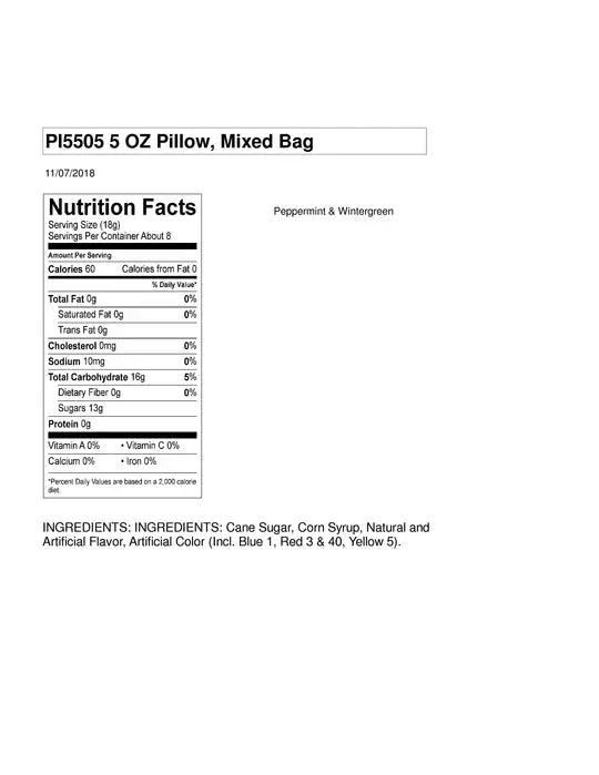 Hammond’s Mixed Mint Pillows combine the crisp shell and creamy center of classic pillow candy with a refreshing duo of peppermint and wintergreen. Each 5 oz gift bag features festive red and green pieces that deliver a cool burst of flavor in every bite—perfect for snacking, gifting, or adding a minty touch to seasonal displays.