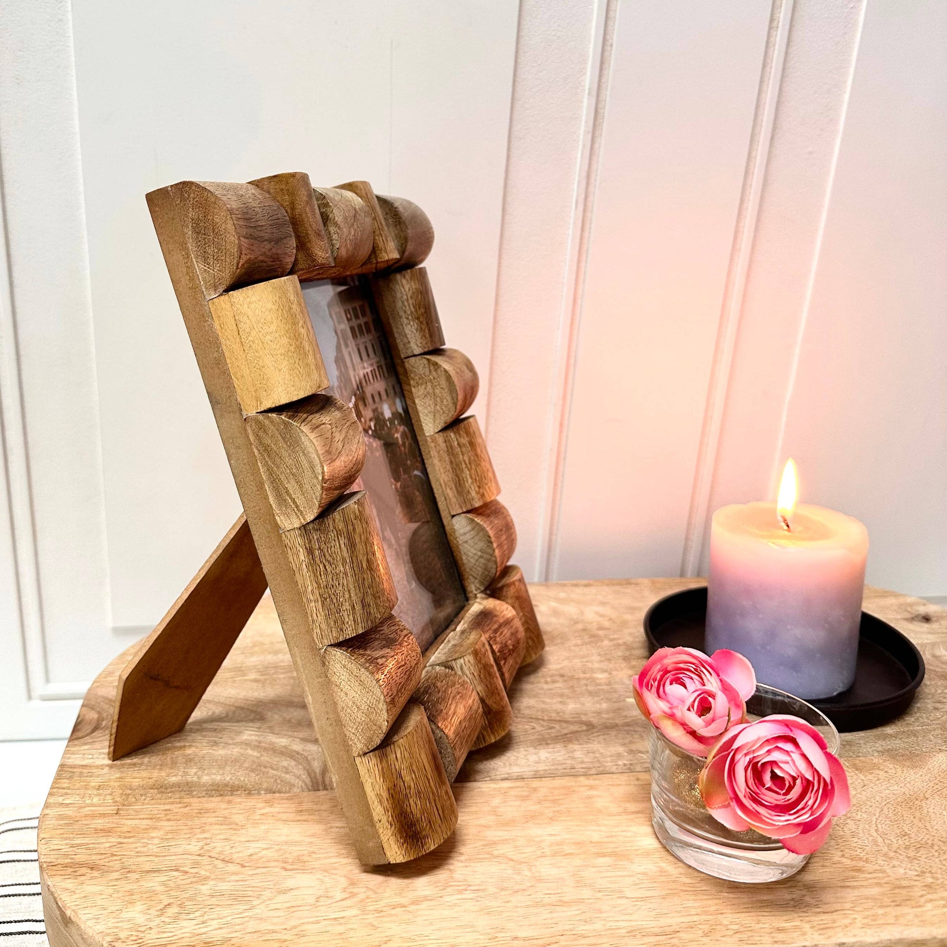 Introducing our exquisite Wood Photo Frame, designed to beautifully display your cherished memories. With its sleek and timeless design, this frame is the perfect addition to any home decor. Crafted from high-quality wood, it offers durability and longevity, ensuring your precious photos are protected for years to come. The frame accommodates a 5x7 photo, allowing you to showcase your favorite moments in a stunning manner. Its versatile design enables both vertical and horizontal display options, providing flexibility to suit your preference. Whether it's a family portrait, a scenic landscape, or a candid snapshot, this Wood Photo Frame will elegantly showcase your treasured images. Ideal for gifting, this frame is a thoughtful and sentimental present for birthdays, anniversaries, or any special occasion. Enhance your living space with the warmth and beauty of our Wood Photo Frame, and let your memories shine.