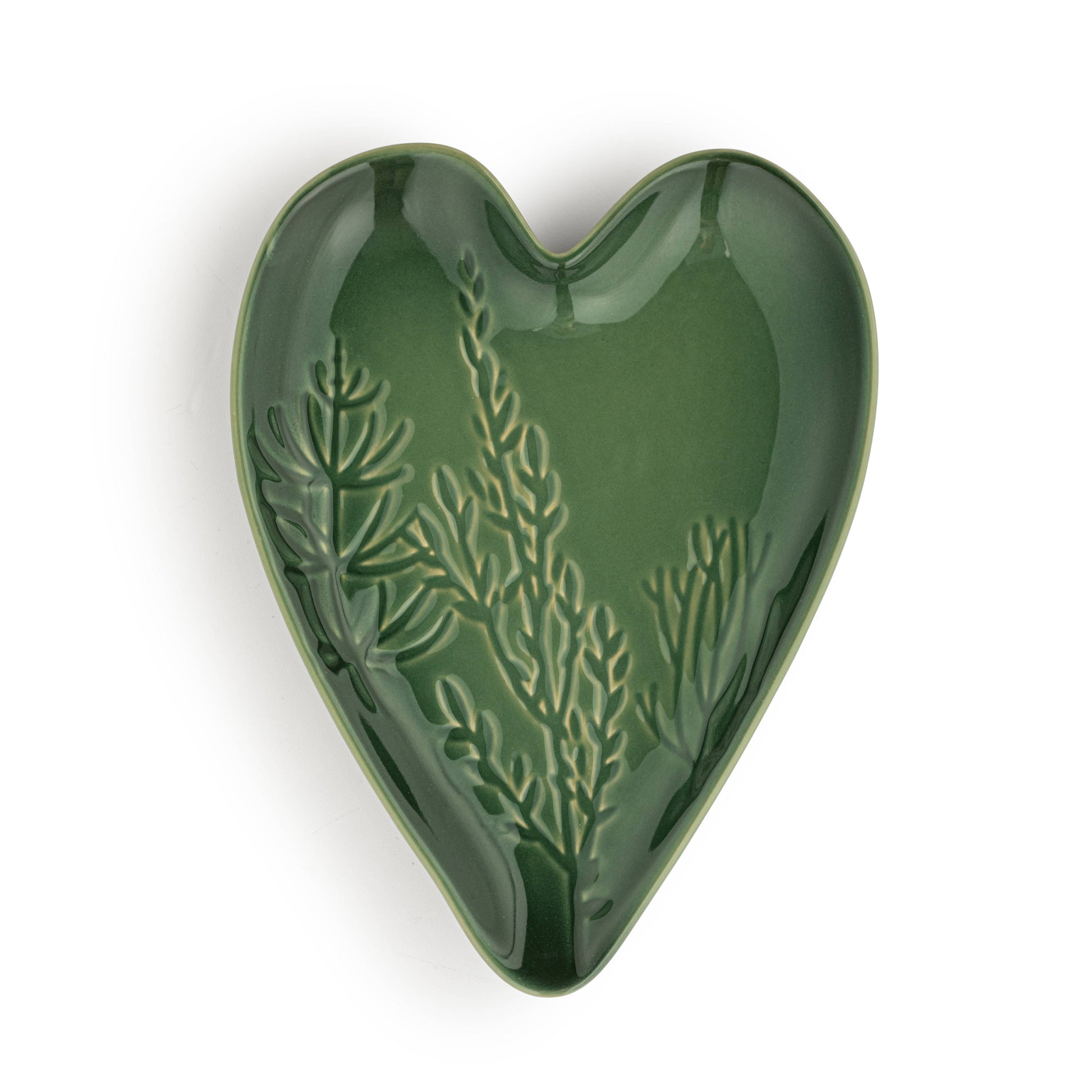 Green Pressed Floral Heart Spoon Rest - 4.5x6.5i