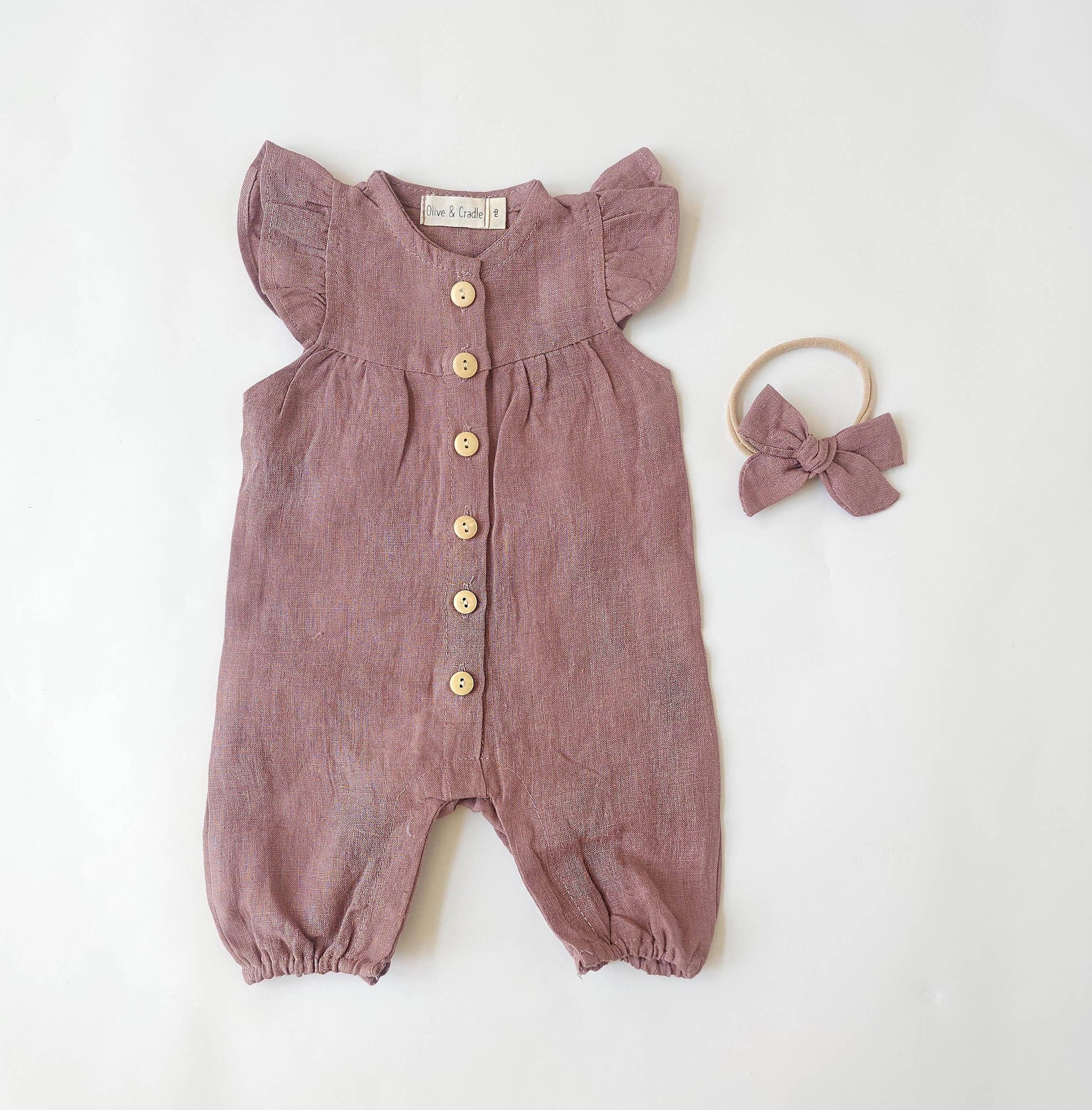 Jennifer Linen Jumper + Bow: Oat| Natural Linen / 18-24 monthsUS numeric