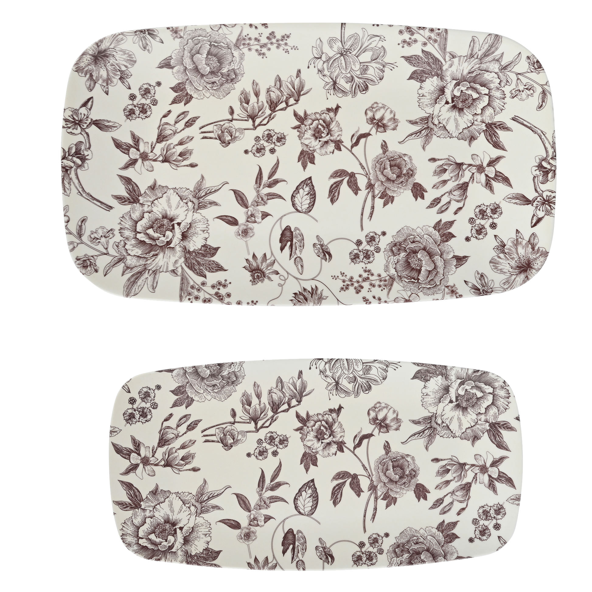 Serve up seasonal charm with our Set of 2 Brown Delft Melamine Serving Trays. Featuring a vintage-inspired floral pattern in warm brown tones, these lightweight, durable trays are perfect for Fall gatherings, Thanksgiving tables, and year-round entertaining. These serving dishes make great additions to kitchen collections, Autumn displays, and more.