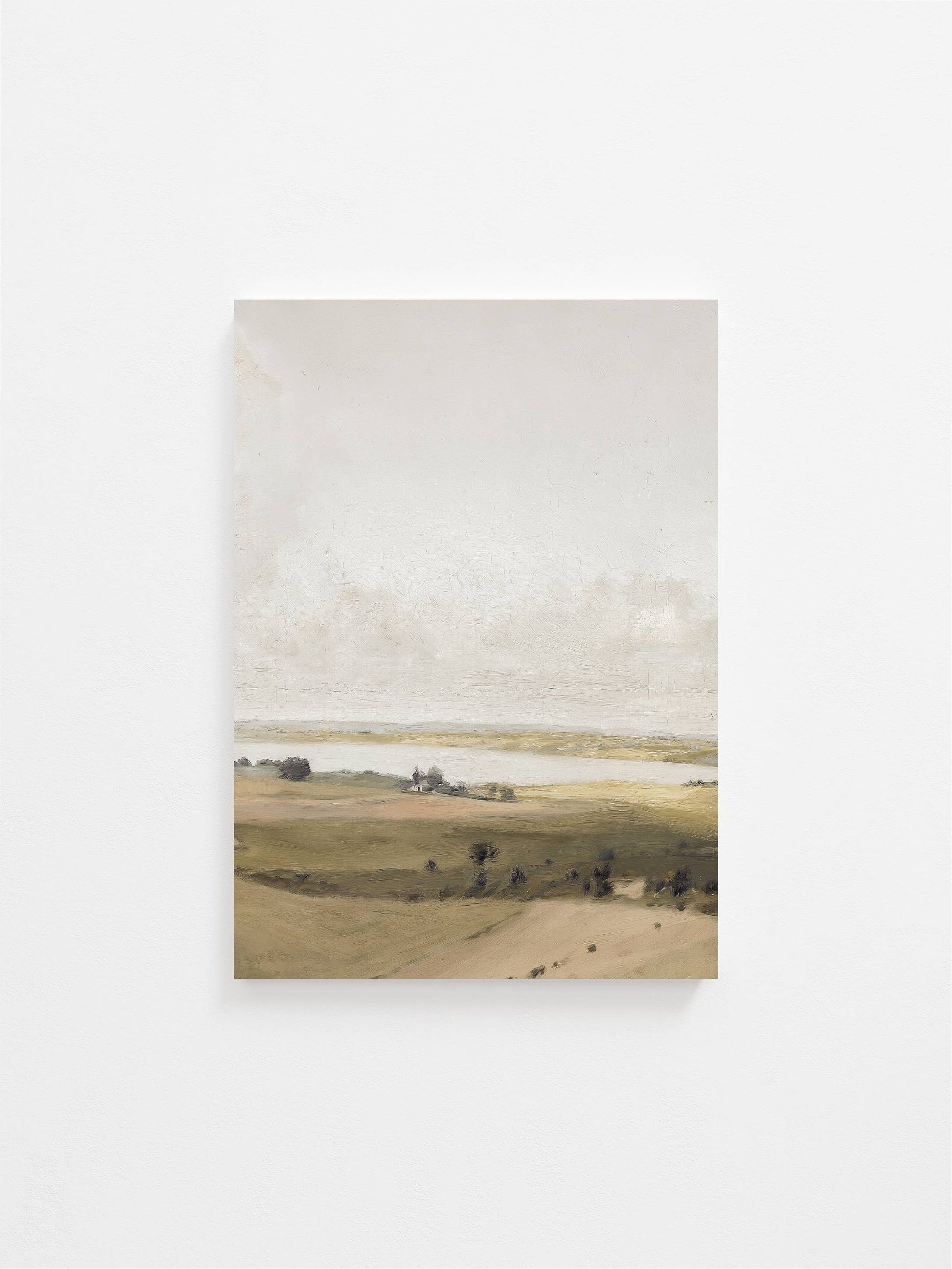Muted green and neutral- toned art print with a vintage oil painting look.