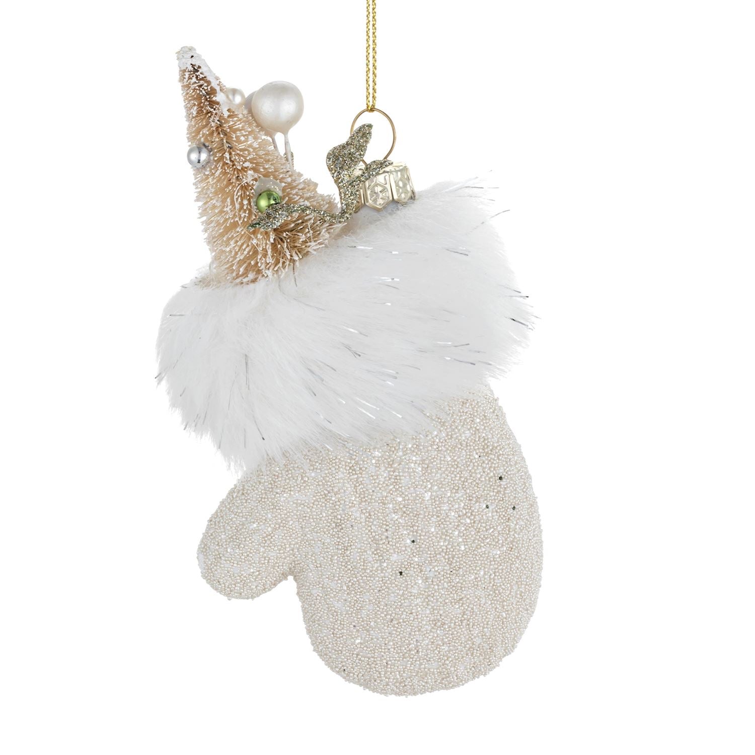 Sparkly Mitten With Fur Ornament - 3x4in