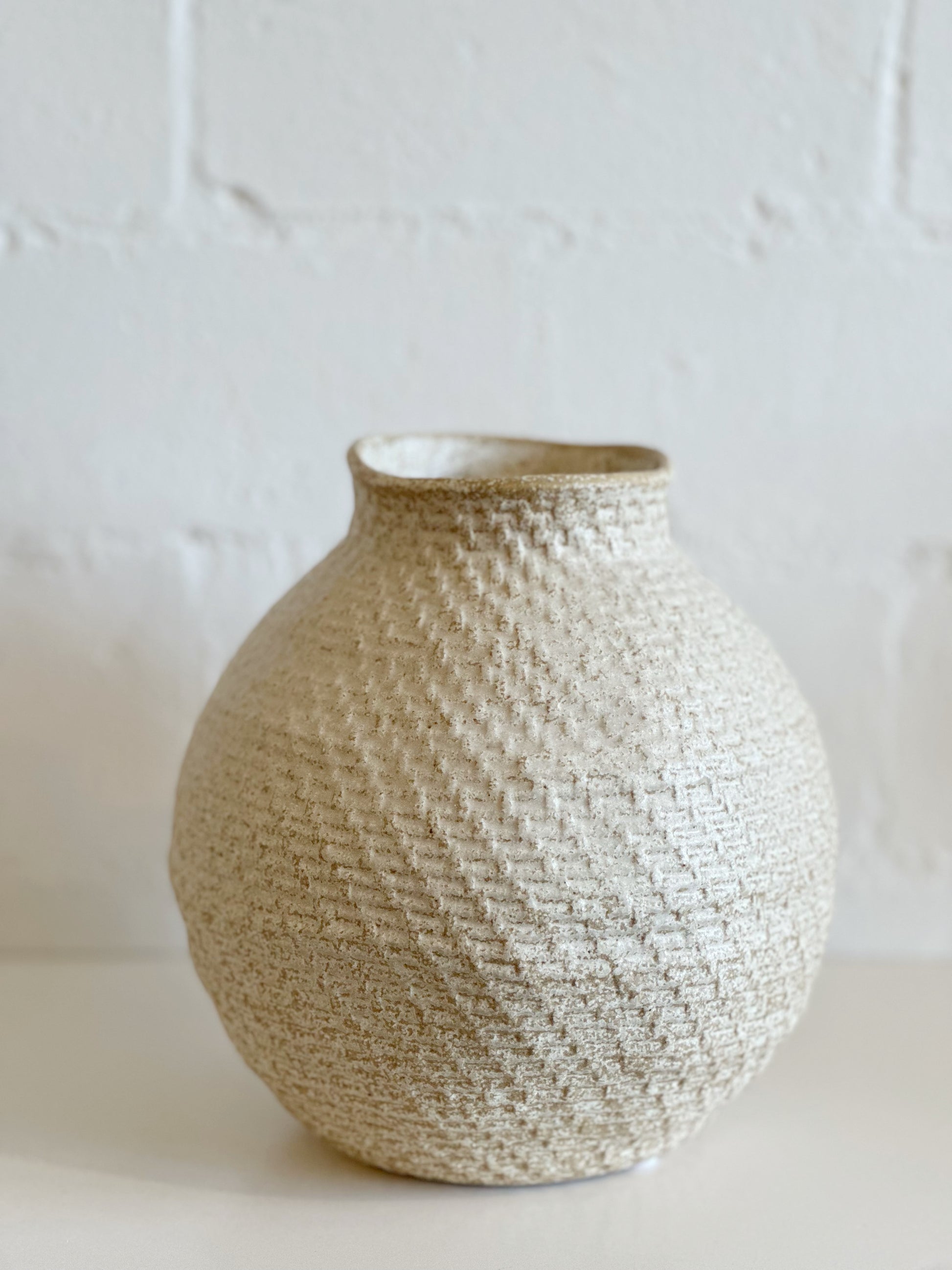 TEXTURED CREAM BALL VASE