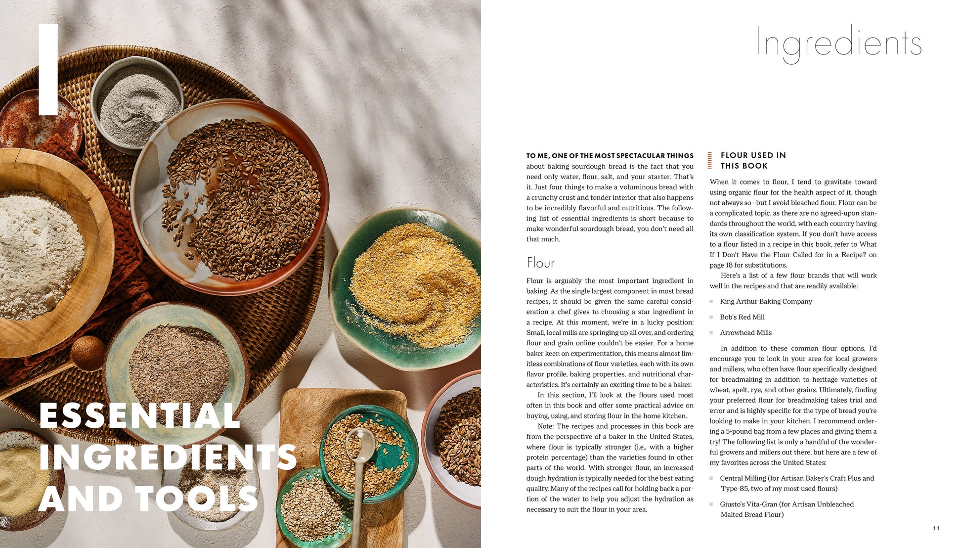 Essential freeform loaves: Simple Sourdough, Rosemary & Olive Oil, Extra-Sour Sourdough, Cranberry & Walnut, Demi BaguettesPan loaves: Everyday Sandwich Bread, Naturally Leavened Brioche, German Whole Rye, Honey Whole Wheat Sandwich BreadPizza and flatbread: Roman-Style Pan Pizza, Focaccia, Naan, Flour Tortillas, PitaBuns, rolls, and more: Soft Dinner Rolls, Potato Buns, Ciabatta Rolls, English Muffins, BagelsSweets: Weekend Cinnamon Rolls, Italian Doughnuts, Summer Fruit Sourdough Crostata, Banana Bread, Cinnamon Babka.