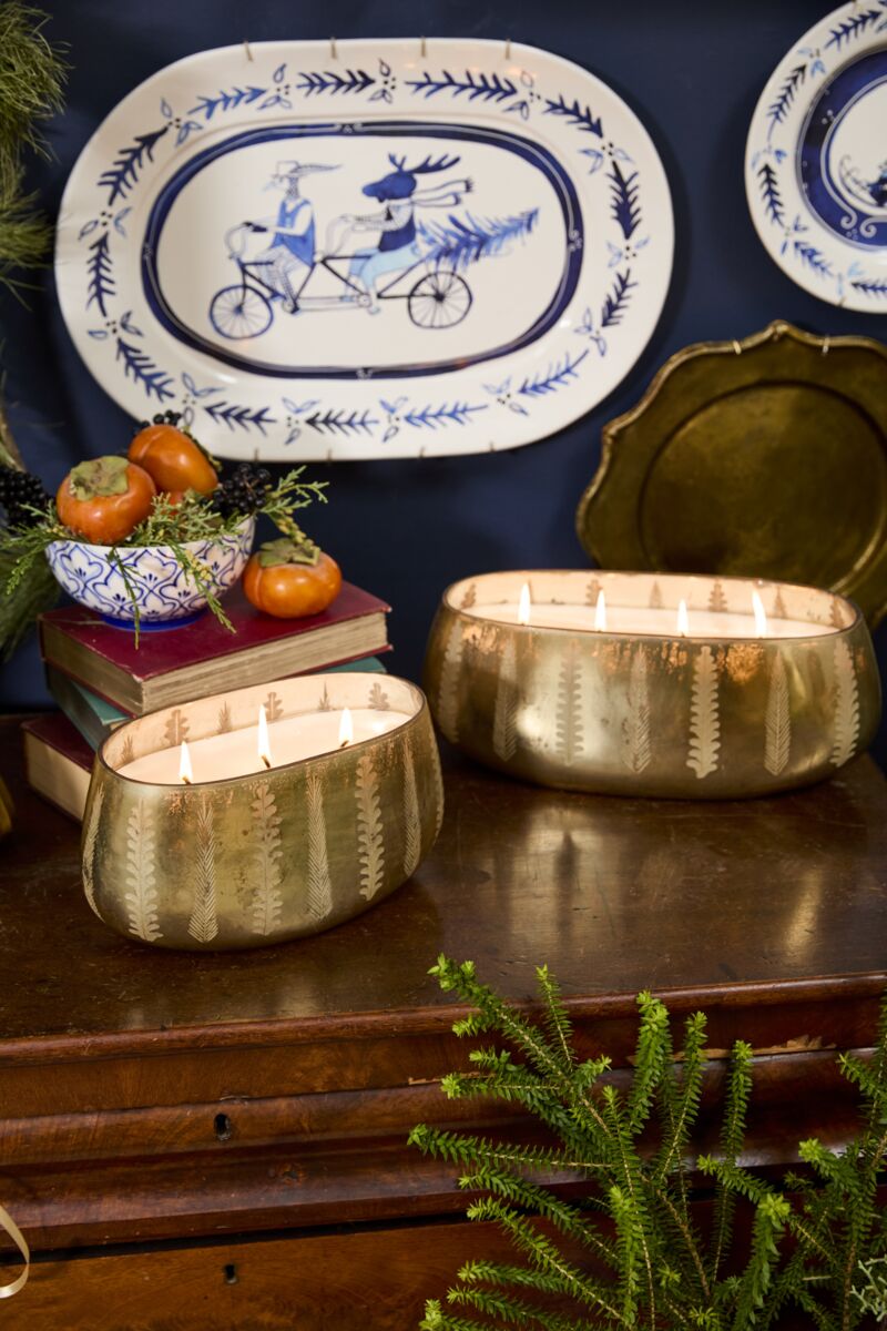 Immerse your home in the warmth of the holidays with the Winter Forest Tiffany Candle Collection. These candles offer a long burn time of 110 or 128 hours, filling the room with the rich scents of leather, fir, cedarwood, and cracked peppercorn, reminiscent of a cozy Christmas. The etched glass oval vessel, finished in gold metallic, can be repurposed as a decorative holder for greenery, pinecones, or holiday florals once the wax has burned down.