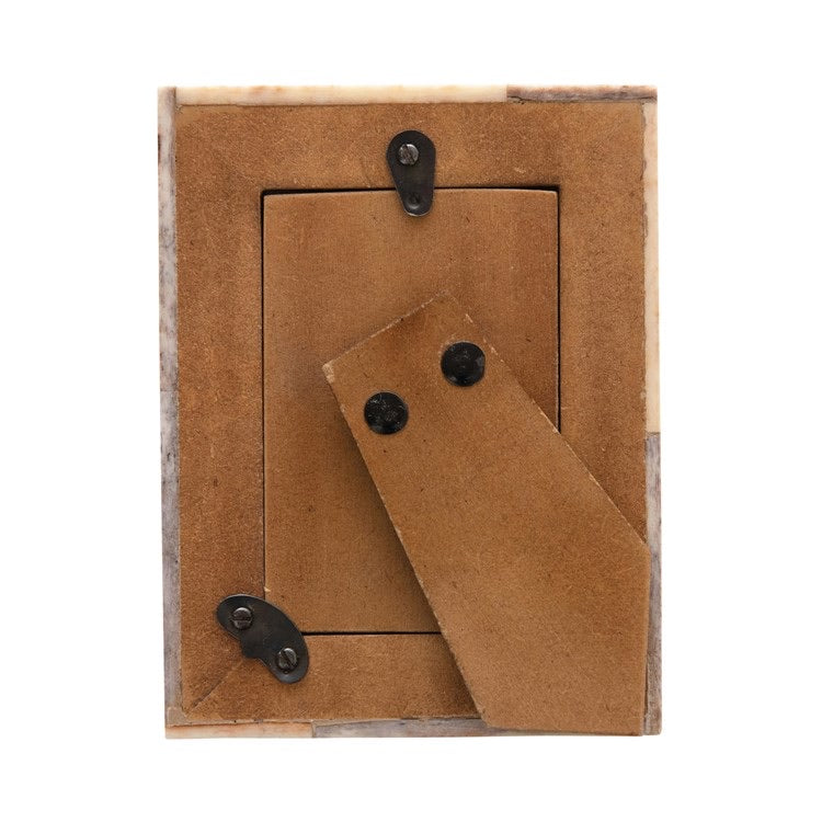 3-1/4"L x 4-1/4"H Handmade Two-Tone Bone & MDF Photo Frame, Natural (Holds 2" x 3" Photo)
