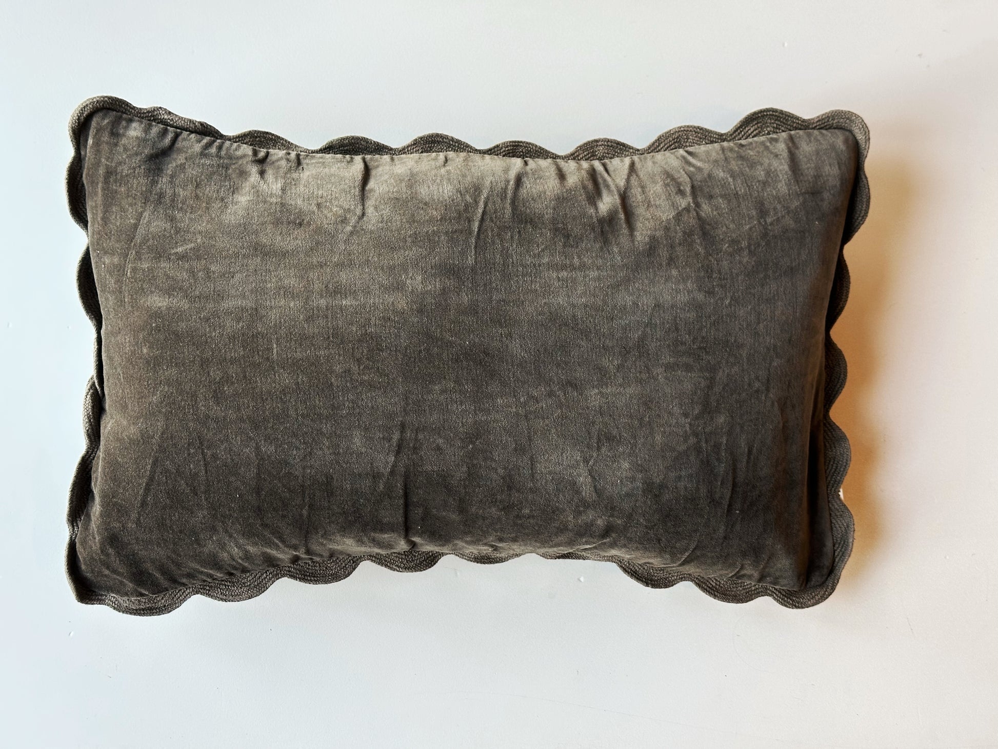 21x12 Velvet Scallop Pillow, Charcoal