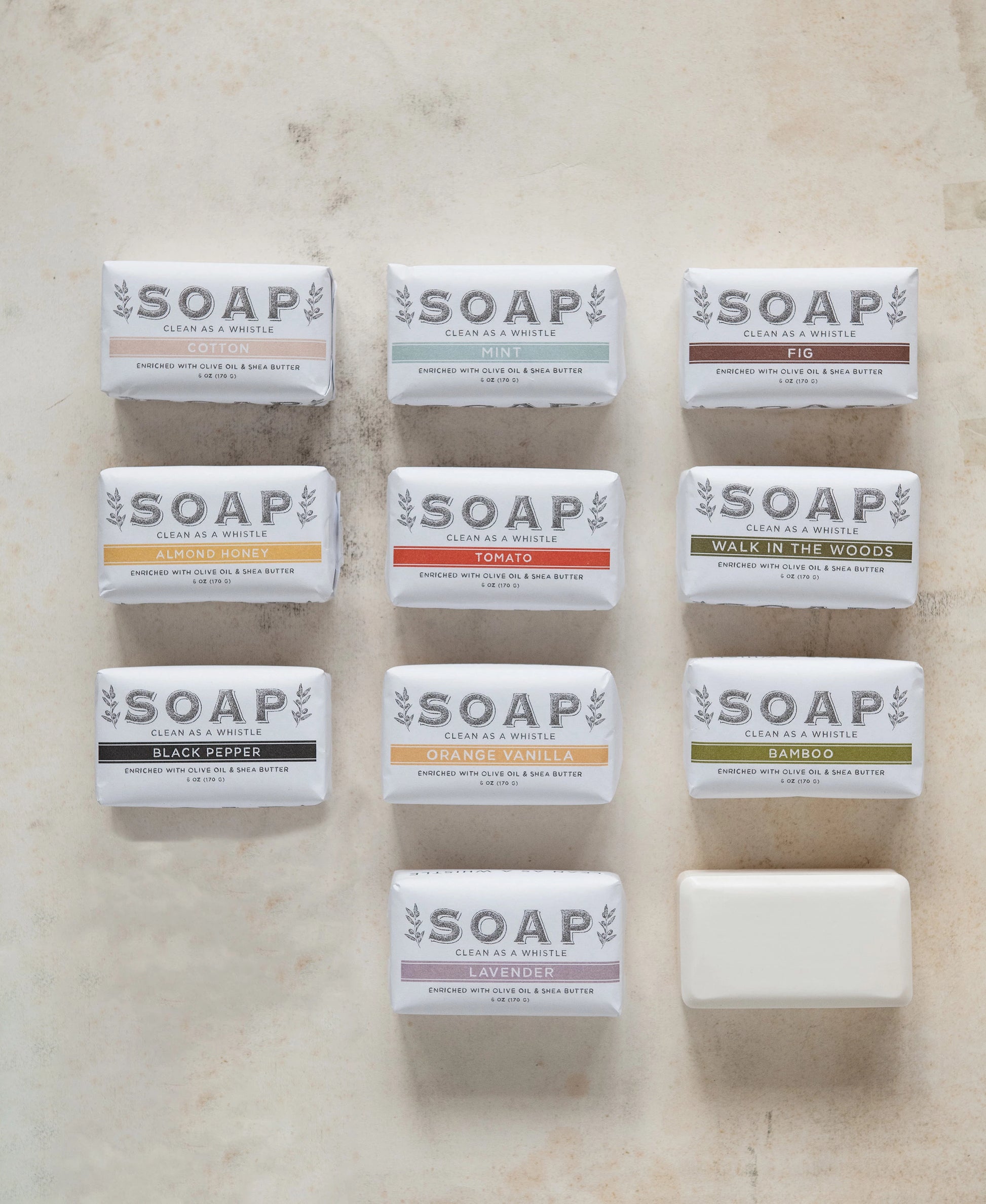 This bar soap is a wonderful addition to any kitchen or bathroom sink. Enriched with olive oil and shea butter, this walk in the woods soap has a distinct fragrance. With beautiful packaging detail, this soap looks lovely next to any home's sink. Leaves hands smelling great. Made in the USA.