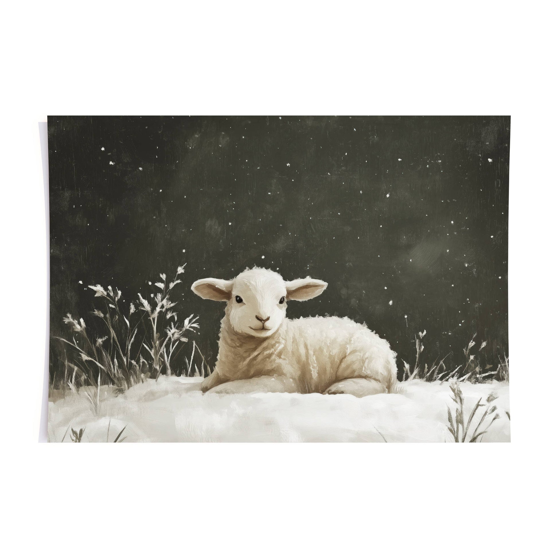 Christmas art for the Christian home. This beautiful of a white lamb in the snow is a great reminder of the reason for this season.