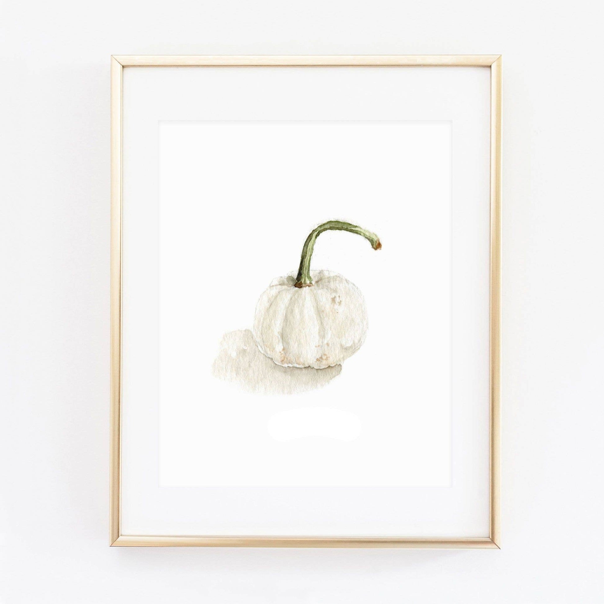 This lovely white pumpkin art print is perfect for displaying around the home during the fall or year round.