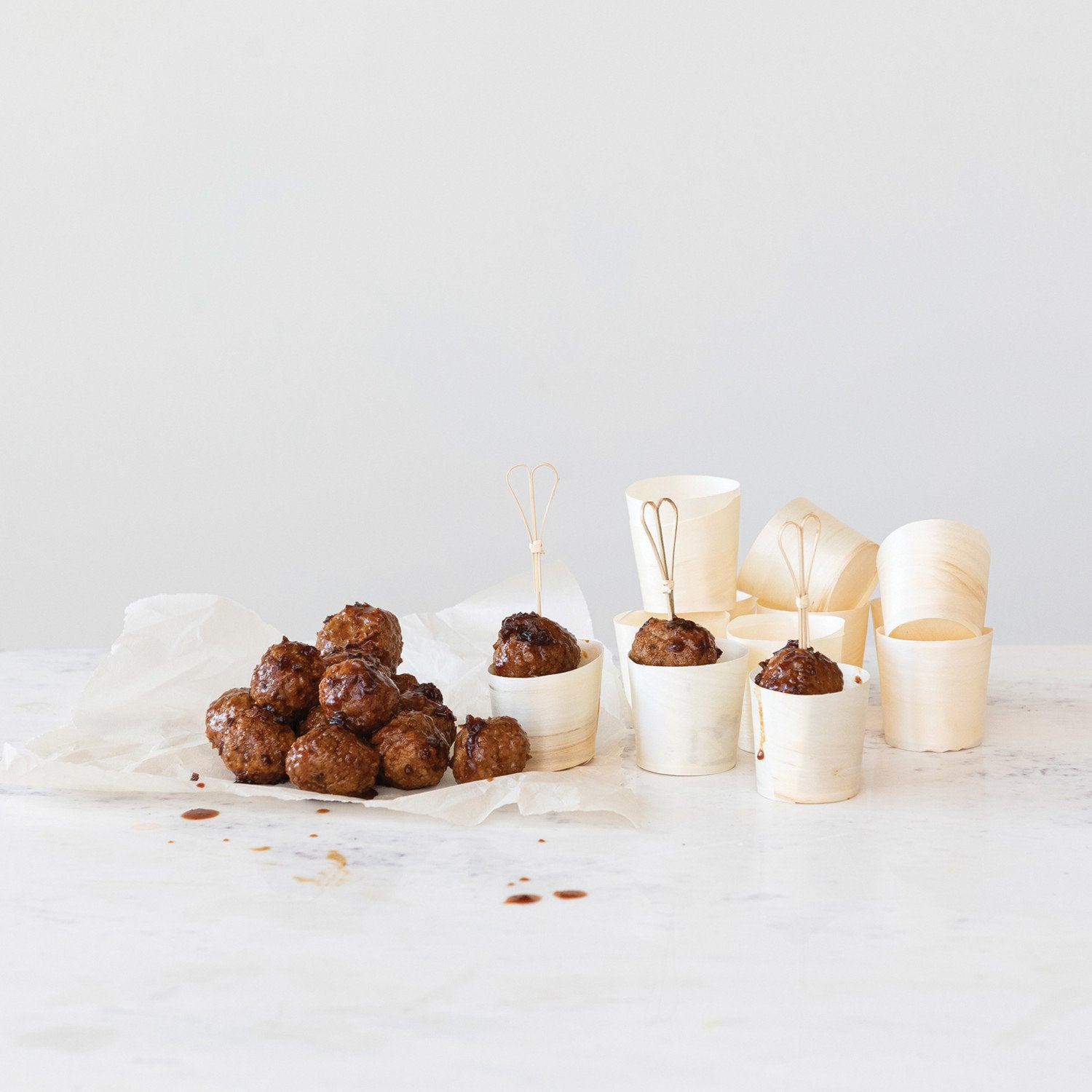 Wood Single Use Snack Cups in Kraft Box, Set of 24