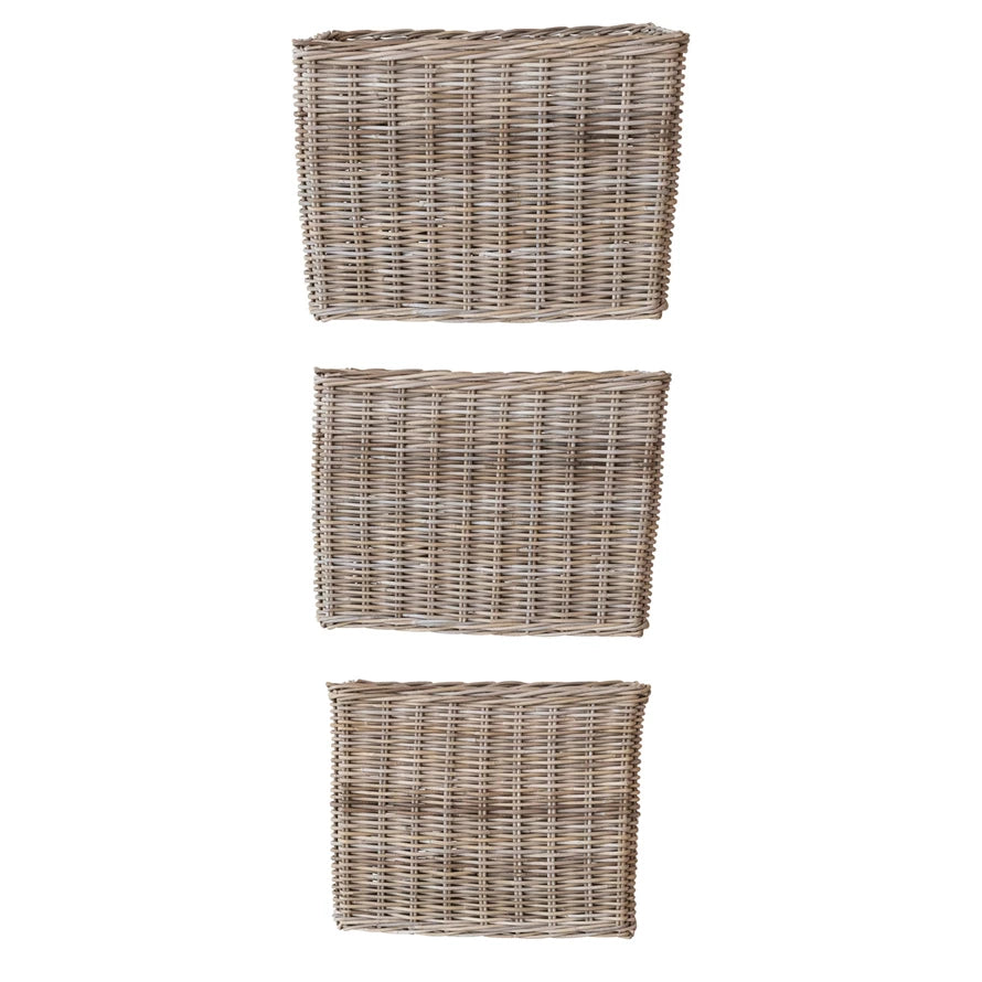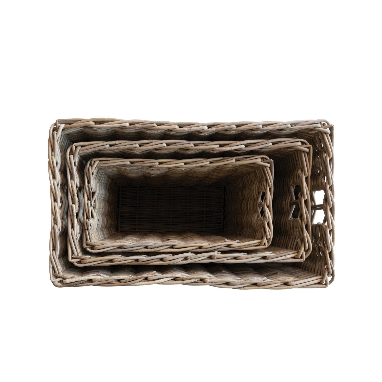 STORE PICK UP ONLY. Large 28-3/4"L x 17"W x 21-3/4"H, Medium 25-1/4"L x 13-1/2"W x 19-3/4"H & Small 19-3/4"L x 9-3/4"W x 17-3/4"H Rectangular Woven Wicker Rattan Baskets w/ Handles, NaturaL